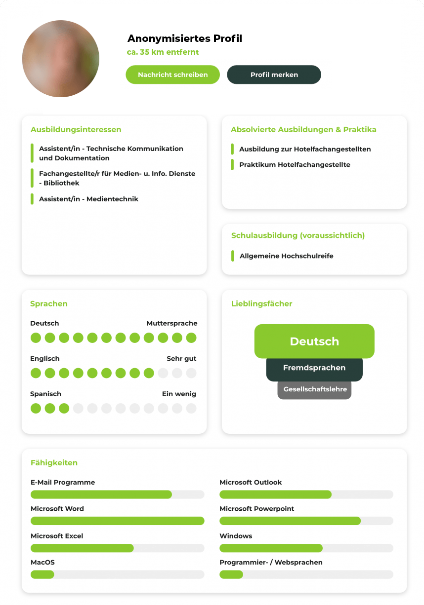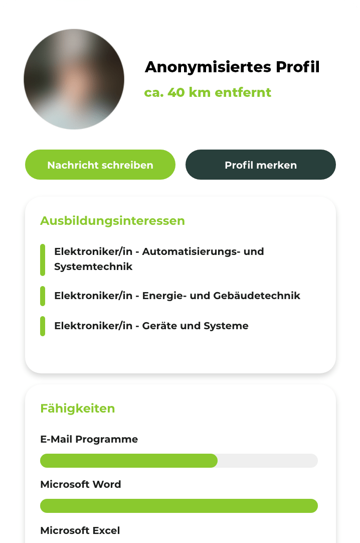 Auszubildende finden muss nicht schwer sein. beAzubi ist der einfachste Weg um mit Ausbildungssuchenden in Kontakt zu treten. beAzubi wurde gemeinsam mit dem Kreis Minden-Lübbecke entwickelt und integriert Schulen, Schüler:innen und Unternehmen in einem System. So erreichen Sie, als Unternehmen, bereits Schüler:innen ab der 8. Klasse und finden Jugendliche aus Ihrer Region für Berufsfelderkundungstage, Praktika und Ausbildungsplätze. Die Berufsfelderkundung startet Anfang 2022 für Schüler:innen im Kreis Minden-Lübbecke. Nehmen Sie als Unternehmen jetzt teil und genießen Sie die Vorteile von beAzubi. Auf unserer Download-Seite finden Sie umfangreiches Informationsmaterial als E-Book oder zum Ausdrucken. Zeigen Sie Jugendlichen und Ausbildungssuchenden, warum Ihr Unternehmen das Richtige für eine Ausbildung oder ein Praktikum ist. Heben Sie sich mit Ihrem Profil von anderen Unternehmen ab! Laden Sie Medien hoch, präsentieren Sie Ihre Vorteile für Mitarbeitende und veröffentlichen Sie interessante Neuigkeiten. Definieren Sie Ihre individuellen Anforderungen und erhalten Sie automatisch passende Profilvorschläge von potenziellen Auszubildenden. Setzen Sie passende Profile auf Ihre Merkliste, so behalten Sie Ihre Favoriten im Blick und können die Unterschiede schnell & einfach vergleichen. Sie haben Ihre Favoriten ausgewählt? Super! Dann starten Sie ein Interview und lernen Ihre potenziellen Auszubildenden näher kennen. Im Anschluss erhalten Sie eine übersichtliche Auswertung der Interviews und haben die Möglichkeit Ihre Auserwählten zu einem persönlichen Gespräch einzuladen. Nachwuchsrekrutierung aus der Region, für die Region.